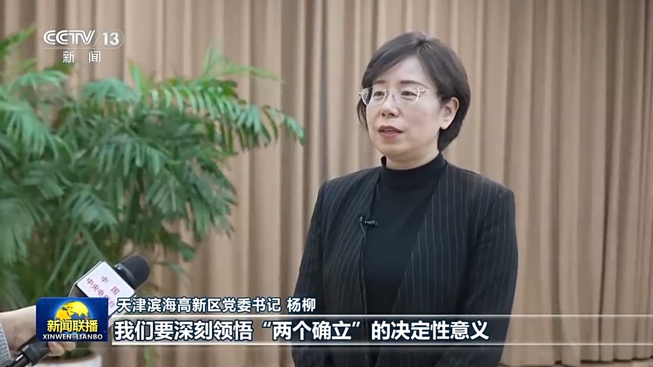 天津濱海高新區黨委書記 楊柳:我們要深刻領悟“兩個確立”的決定性意義,堅決做到“兩個維護”,自覺把思想和行動統一到總書記重要講話精神和黨中央決策部署上來,堅持智能化、綠色化、融合化方向,推進產業創新、人才集聚,切實把學習成果轉化為實干實績。