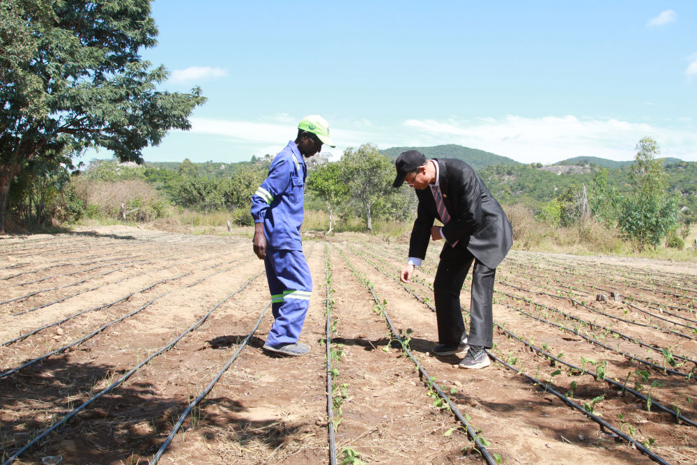 2025年5月14日,在位于津巴布韋中馬紹納蘭省的中國—津巴布韋農業合作示范村,中方農業專家指導當地村民。新華社發(塔法拉 攝)