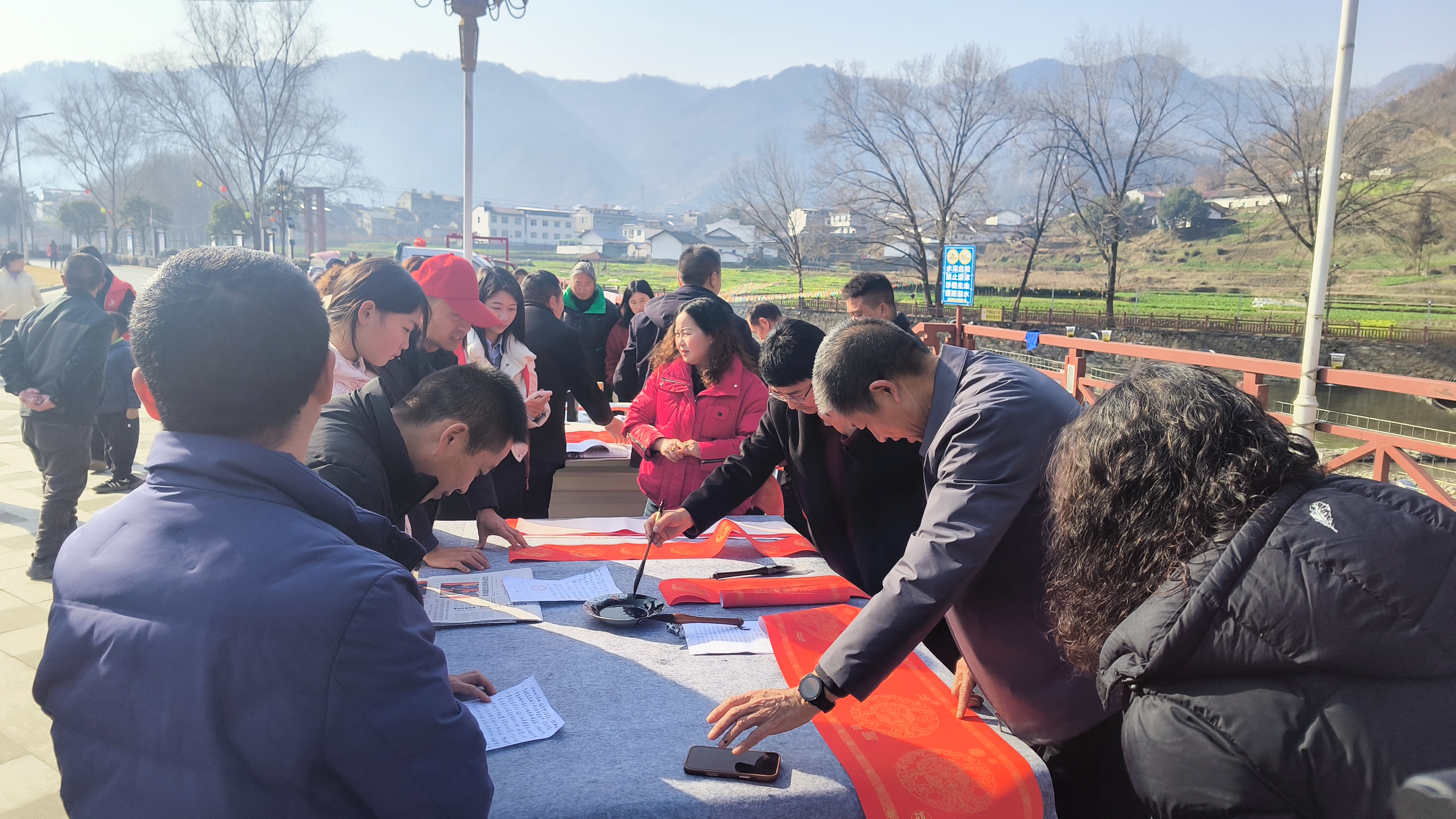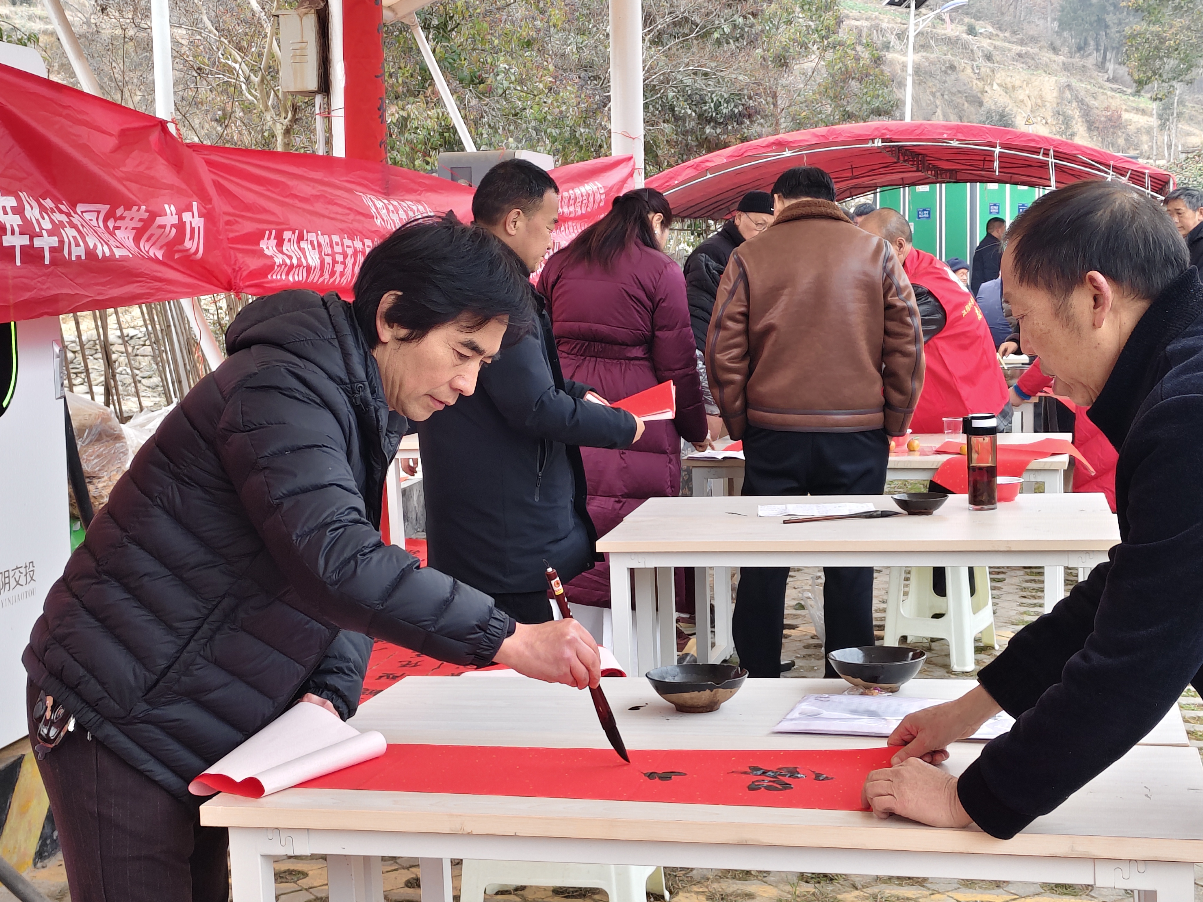 2月5日,平利縣文聯、書協聯合大貴鎮公共文化服務共同體分中心、新時代文明實踐所,在集鎮親水廣場開展義寫春聯活動,以翰墨傳遞新春祝福,用文化賦能文明實踐。 陳青青 攝