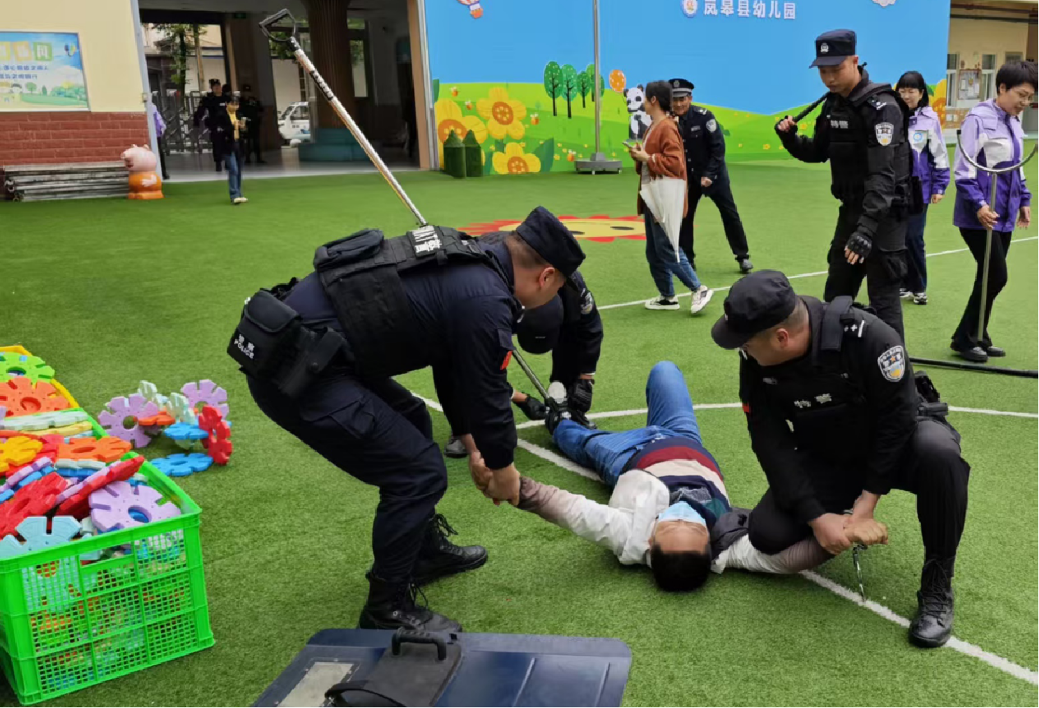 △ 民警在幼兒園開展應急演練