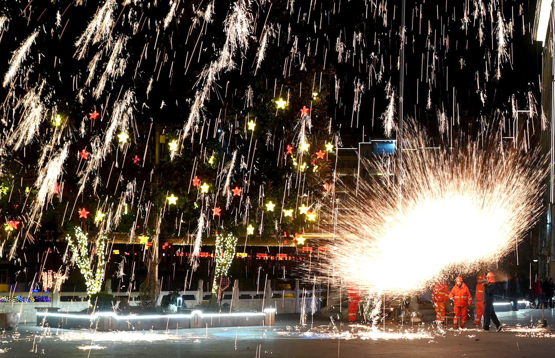 2月18日晚,寧陜縣政府廣場(chǎng)舉辦民俗文化活動(dòng)。圖為“打鐵花”表演。陳苗 攝