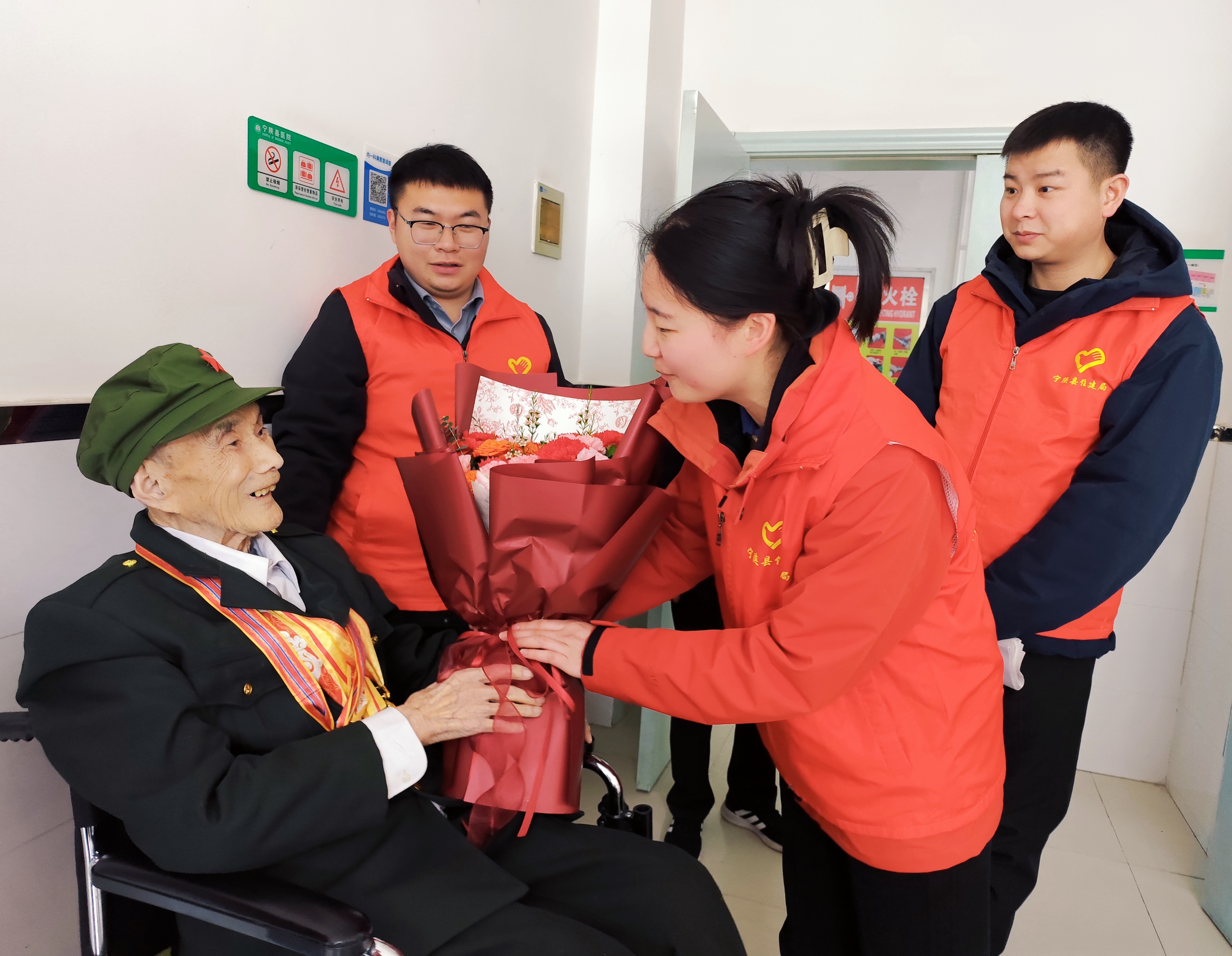 活動現場暖意融融,志愿者圍在老人身邊,促膝長談、噓寒問暖,細心詢問其飲食起居和身體狀況,認真傾聽那段浴血奮戰的革命故事。“老人飲食清淡,精神狀態一直很好。”護理人員李娟介紹,老人性格開朗,時常給大家講述戰場事跡,傳遞著滿滿的正能量。