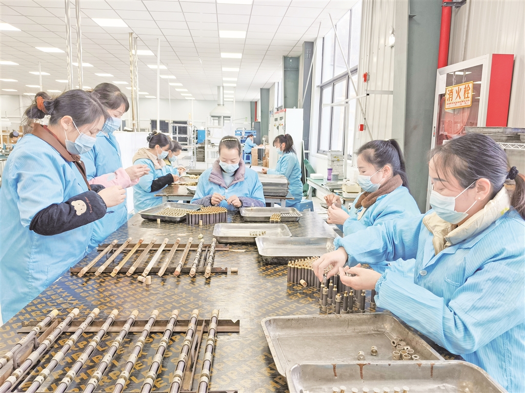 在陜西歐西克電子有限公司生產車間,各條生產線滿負荷運轉,高壓陶瓷電容器、GPS天線片等產品有序生產。從電子器件成型、燒制、焊接,到絲網(wǎng)印銀、質量抽檢,每一道流程都嚴謹規(guī)范、精益求精,以高標準保障產品質量?!皬凸彤a后,企業(yè)將趕制訂單作為核心任務,全力保障訂單交付?!必撠熑烁呔S軍信心滿滿地表示,“2026年企業(yè)將聚焦生產設備更新與產能提升,加大科技創(chuàng)新和設備投入,爭取實現(xiàn)年產值9000萬元的目標,帶動更多群眾在家門口就業(yè)增收?!?/p>