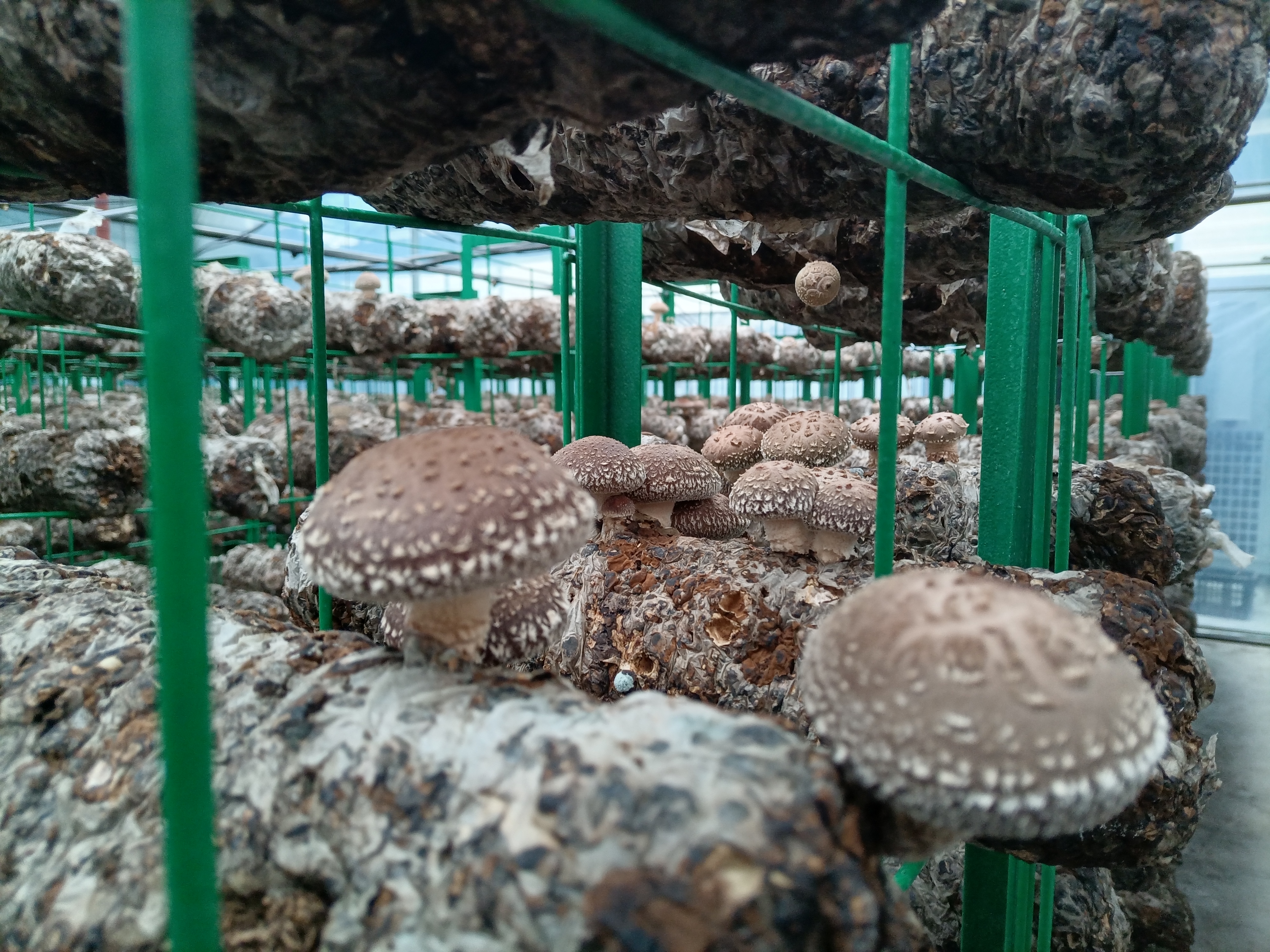 △ 喜河鎮晨光村食用菌標準廠房內香菇長勢喜人