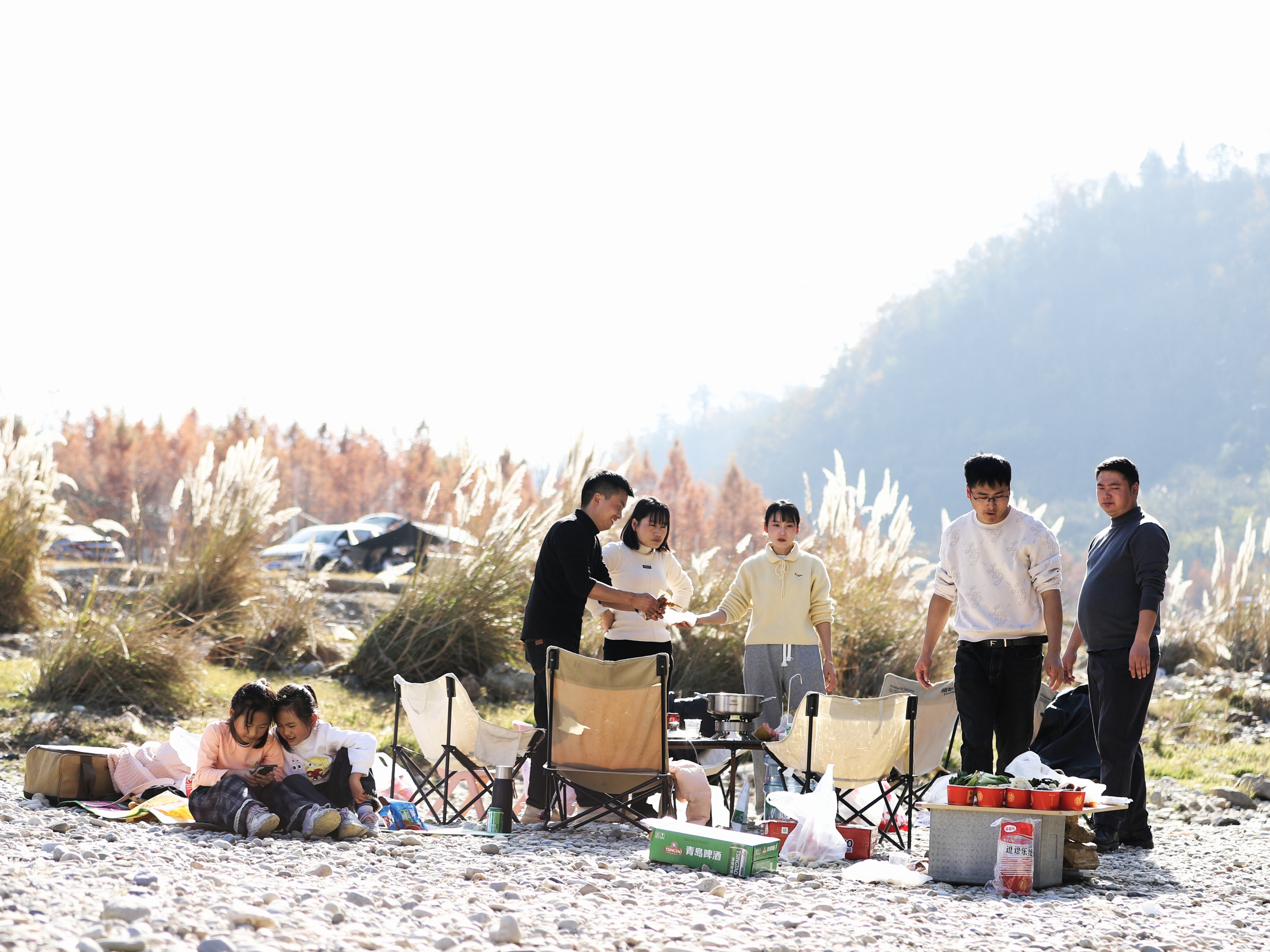 觀賞完郁金香的游客正在周邊露營