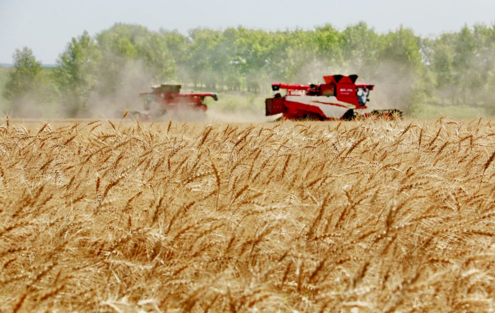2025年8月5日,位于黑龍江省五大連池市的大慶油田農場調動多臺聯合收割機搶收小麥。新華社發(陸文祥 攝)