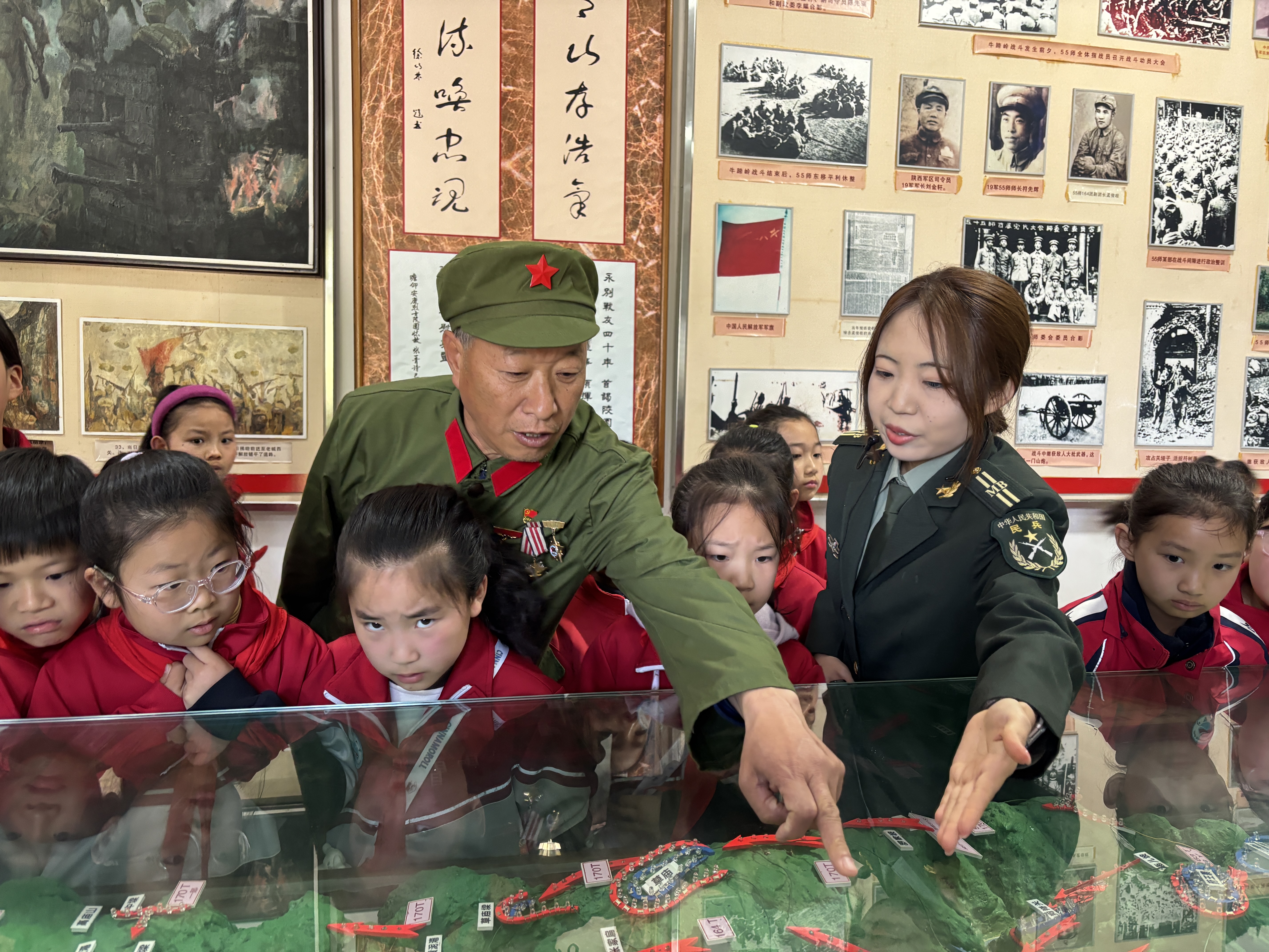 4月1日,漢濱區退役軍人事務局在安康烈士陵園紀念碑廣場舉行“追尋·2026·清明祭英烈”祭掃活動,共同追憶崢嶸歲月,緬懷革命先烈,傳承紅色基因。圖為老兵給學生講述戰斗故事。汪海玉 攝