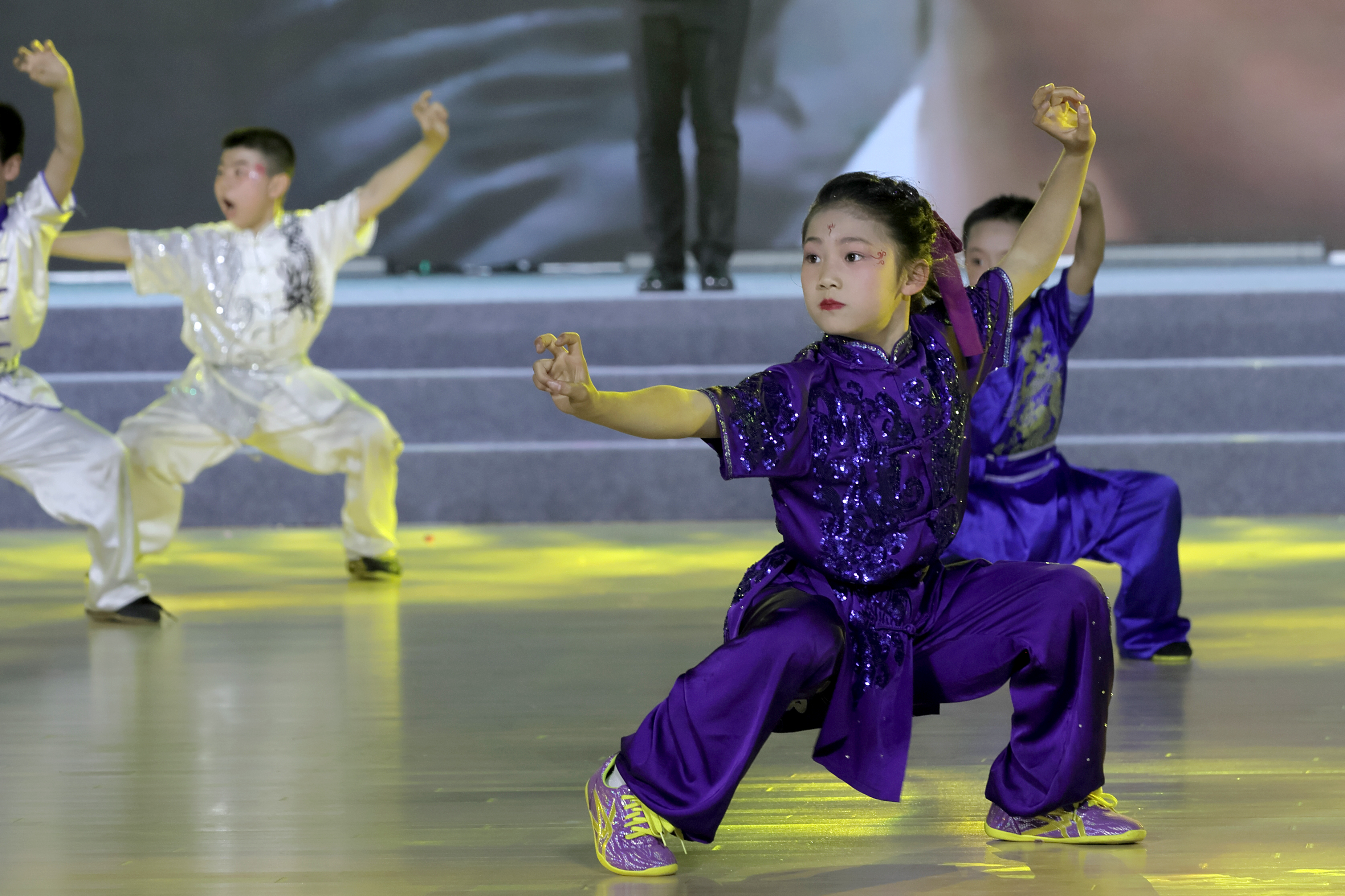 開幕式現(xiàn)場(chǎng)座無虛席、氣氛熱烈。運(yùn)動(dòng)員、裁判員方陣精神抖擻、依次入場(chǎng),盡顯昂揚(yáng)向上的體育風(fēng)貌。開幕式文藝展演精彩紛呈,智能機(jī)器人動(dòng)感起舞、科技感十足,傳統(tǒng)武術(shù)表演剛?cè)岵?jì)、氣勢(shì)如虹,充分展現(xiàn)了中華武術(shù)的獨(dú)特魅力與全民健身的蓬勃活力。演員馬景濤、樊少皇,導(dǎo)演徐小明等文體界嘉賓傾情助陣,將現(xiàn)場(chǎng)氛圍一次次推向高潮,歡呼聲、喝彩聲此起彼伏。