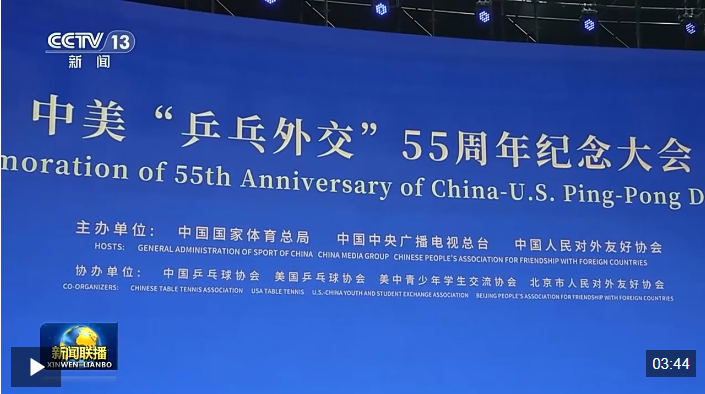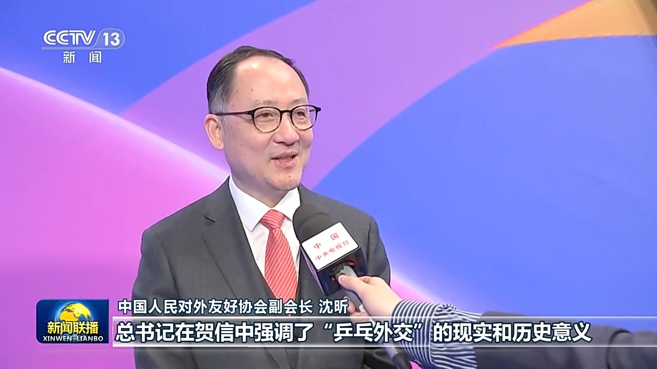 中國人民對外友好協會副會長 沈昕:總書記在賀信中強調了“乒乓外交”的現實和歷史意義,特別鼓勵兩國的青年一代他們要相知相親、攜手同行,這對中美兩國的民間交往是一個巨大的推動,也注入了溫暖的能量。