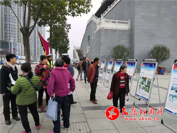全國交通宣傳日江北交警隊在西城閣進行安全宣傳并發放安全宣品。
