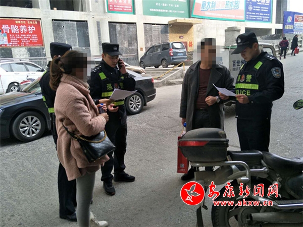 1月11日下午14時許,巡警大隊民警在加強主城區街面巡邏時,巡邏至下菜灣社區警務室附近,發現一對男女在沿街違法張貼野廣告,民警立即上前制止對方行為,依法要求當事人清除掉所粘貼野廣告,當場收繳所持野廣告3000余份,并對當事人批評教育,勸告對方切勿再次粘貼。XAC安康新聞網