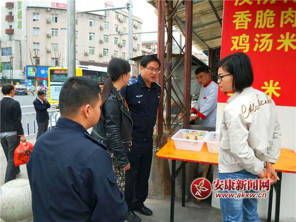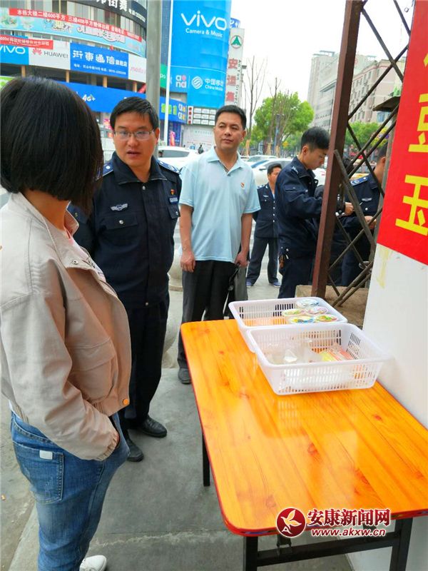北門社區干部協同漢濱區城管執法中隊,共同整治巴山東路臨新城北路口什字主干道出店占道經營戶,針對存在問題當場發出整改通知并要求限期整改。