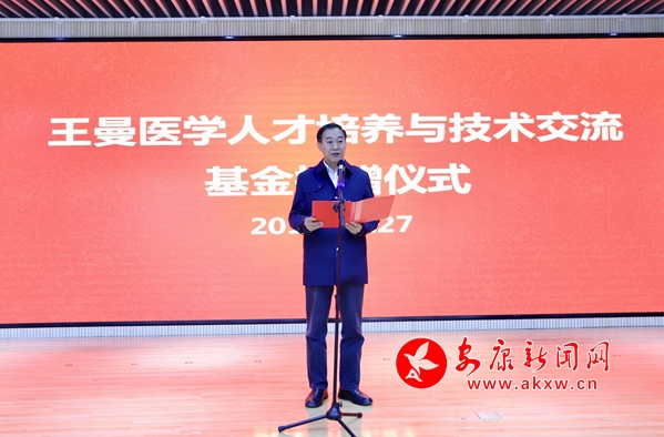 劉元世代表安康市委市政府向王曼基金發起人王智明、雒秀蘭致以崇高的敬意。他表示,兩位先生將女兒留給他們的遺產無償捐贈給安康市中心醫院,這一崇高的善行義舉,不僅僅是對王曼博士的緬懷,更是兩位尊敬的長者行為世范為我們樹立了修身立德的榜樣。希望接受捐贈的市中心醫院切實把基金管好用好,嚴格按照國家公益事業捐贈有關規定和捐贈人的意愿,不斷加快醫院醫療衛生技術人才培養,推動醫院醫療技術進步和科研技術交流,積極助推全市醫療衛生事業發展。