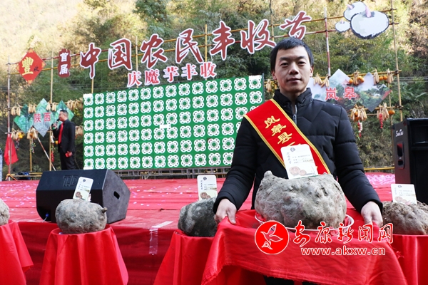 活動期間,對評選出的嵐皋縣優秀魔芋園區、十佳職業農民、魔芋專業大戶、魔芋采挖比賽優勝集體以及嵐皋縣首屆“魔芋王”進行了表彰。在現場,一顆重達10.25公斤的魔芋吸引了觀眾的眼球和拍照,這顆魔芋也被評選為今年的“魔芋王”。魯琦興致勃勃為“魔芋王”獲得者頒獎,并勉勵獲獎農民進一步堅定通過發展魔芋產業增收致富的信心決心。