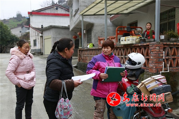 “雷康軍在家嗎?”趙明翠敲開曾溪鎮大溝村三組村民雷康軍的家門,屋子里火爐燒得很旺。“我爸上街了,趙阿姨趕快來坐,把手暖和一下!”雷康軍的女兒一邊招呼著,一邊倒茶水。“你爸有個包裹要簽收,還有你們家上邊的葛天均也有個包裹麻煩代收一下,我給葛天均打電話他說不在家,讓先放到你們家!”