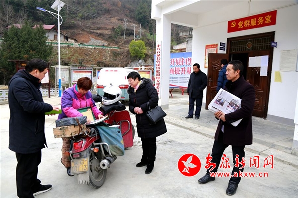 下午3點多走到聯盟村,趙明翠剛把報紙送到村上。村醫葉平菊就熱情地拉著趙明翠的手說:“山里好多群眾都搬到集中安置點安居了!村衛生室都專門聘請的有醫生了!農村婦女都能免費體檢、免費領取相關婦科藥品了!”趙明翠說:“這要感謝黨和國家的好政策!”