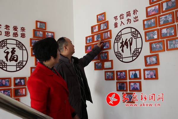 村委會的樓梯道從一樓到二樓的墻上有5個心型照片墻。每張照片都是不同的笑臉,胡珂對每一張照片上的村民都非常了解,一一介紹著。50多歲的王毅夫婦倆;陳慶明兩口子已經80多歲了;五保戶周慶發一輩子沒結婚,和弟弟住在一起。實習記者 滕靜 攝