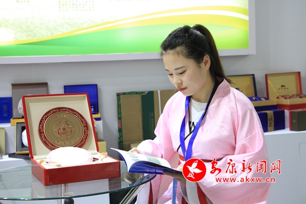 “秦漢古茶是世界上最早的茶,現有青龍、白虎、朱雀、玄武四大系列茶品,今天是展銷會的第一天,已經吸引了很多展客品嘗,大家紛紛對秦漢古茶給予了很高的評價”。安康秦漢古茶股份發展有限公司解說員王曉芳說到。