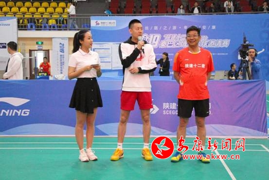 比賽期間,國(guó)家隊(duì)羽毛球女隊(duì)教練,世錦賽男單冠軍陳金來(lái)到比賽現(xiàn)場(chǎng),與比賽手選手合作為觀眾獻(xiàn)上了精彩的表演賽。