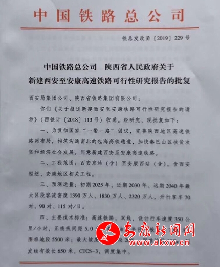 本網(wǎng)訊 (通訊員 安政軒)4月26日,新建西安至安康高速鐵路可行性研究報告獲得中國鐵路總公司、陜西省人民政府正式批復(fù),標志著西康高鐵即將啟動實質(zhì)性建設(shè)。