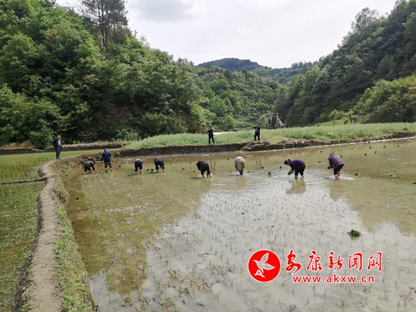 本網訊 (通訊員 高祥婷)近日,平利縣西河鎮女媧山村原生態水稻田內呈現出一片熱鬧繁忙的夏栽場面:施肥平田、扯秧運苗、拉線定距,田間的稻農們挽著褲腳,彎腰在水田里進行人工插秧……中心片區的插秧工作基本完成,放眼望去,嫩綠的秧苗,一行行排列整齊,錯落有致,為水田披上一襲綠色的新裝。