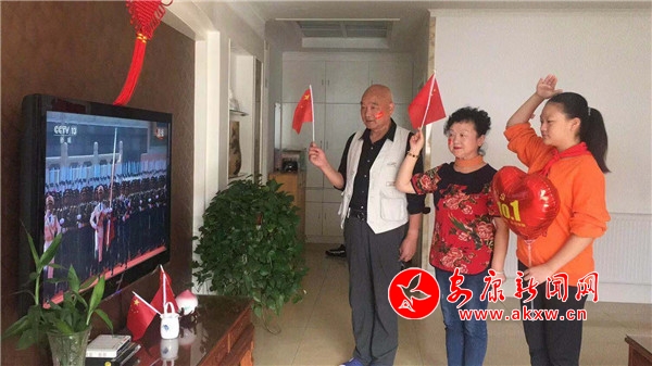 六十花甲看七十華誕,張群生老交警和家人分外激動,為祖國慶生為祖國自豪。(攝影 張歡)