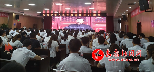 10月1日,恒口示范區(qū)(試驗區(qū))管理委員會組織全區(qū)黨員干部和群眾集體收看慶祝中華人民共和國70周年大會實況轉(zhuǎn)播(攝影 楊靜)