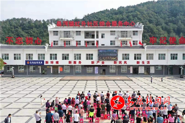 10月1日,漢濱區(qū)縣河鎮(zhèn)鎮(zhèn)政府組織全鎮(zhèn)黨員干部和群眾在新建的紅升社區(qū)廣場集中收看慶祝中華人民共和國70周年大會實況轉(zhuǎn)播。(攝影 陳軍)