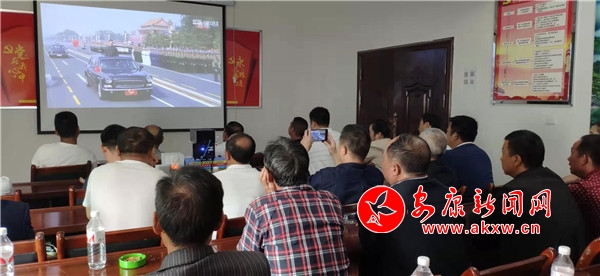 10月1日,瀛湖生態(tài)旅游區(qū)駐村工作隊組織村三委班子、組長、黨員代表、村民代表組織收看國慶慶典。(攝影 陳帥)