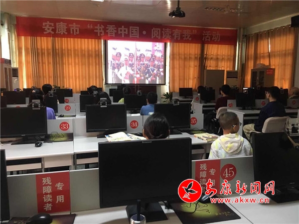 10月1日上午十點,安康圖書館為前來電子閱覽室的30多名讀者轉(zhuǎn)播了慶祝中華人民共和國成立70周年大會央視直播視頻。(攝影 王庭德)