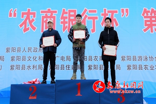 經(jīng)過兩個多小時的激烈角逐,來自安康繞八冬泳隊的汪學(xué)翔和汪星分別獲得了男子青年組和男子中年組第一名,西安雁塔區(qū)零度泳協(xié)的肖平獲得了男子老年組第一名,西安市泳協(xié)的劉巧琴獲得了女子組第一名。