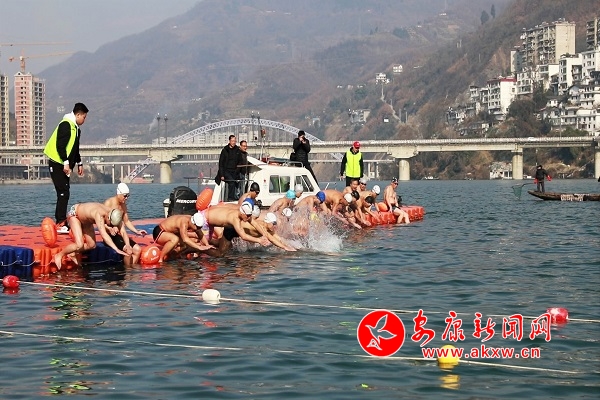 本網(wǎng)訊(記者 李俊 實習(xí)記者 劉攀)12月29日,紫陽“農(nóng)商銀行杯”第四屆漢江冬泳大賽在紫陽縣親水廣場公開水域舉行。來自重慶、四川、湖北、陜西等四個省32支代表隊的600余名冬泳愛好者齊聚紫陽,暢游漢江。