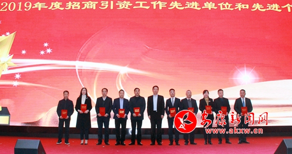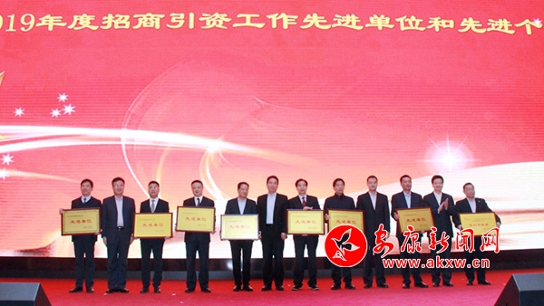 會議通報表彰了2019年度招商引資先進縣區、先進單位、先進個人和返鄉創業優秀企業家。本次會議共簽約招商項目48個,總投資279億元。