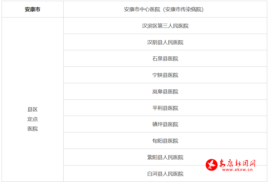 附:安康市新型冠狀病毒感染的肺炎定點醫院名單