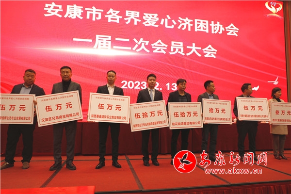 會議聽取了安康市第一屆愛心濟困協會理事會所作的《安康市各界愛心濟困協會工作報告》,宣讀了協會增補副會長、理事會成員名單,表彰頒發了最佳奉獻獎、愛心企業獎,市各界愛心濟困協會會長鄭遠元發起募捐倡議,并現場組織了募捐。