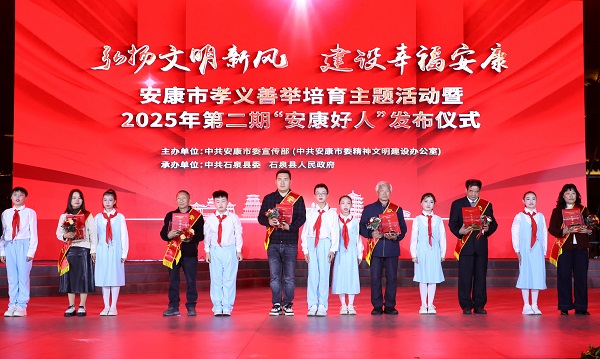 本次活動以“弘揚文明新風 建設幸福安康”為主題,由市委宣傳部主辦、石泉縣委和縣政府承辦,旨在深入學習貫徹黨的二十屆四中全會精神,扎實推進崇德向上幸福安康建設。活動現場,通過播放典型人物短片、現場互動訪談等形式,生動再現了陳登發、高虎、黃壽琴等好人代表的感人事跡。市級領導及“中國好人”“陜西好人”等先進典型代表為28名新入選的“安康好人”頒發紀念證書。活動現場同時發布了2025年安康市“新時代好少年”名單,24名青少年獲得殊榮。