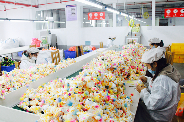 麗日當空,一束束陽光穿過玻璃窗,將整個車間分割開來。4月13日下午,在安康漢奇喜工藝品有限公司的工廠二樓,配合著機器的運轉聲,女工們手指翻飛。各種毛絨玩具……