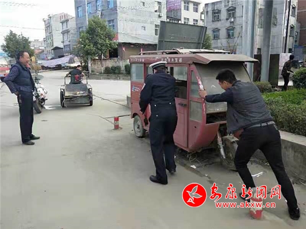 張灘中隊在巴山東路棗園段拖移僵尸車……