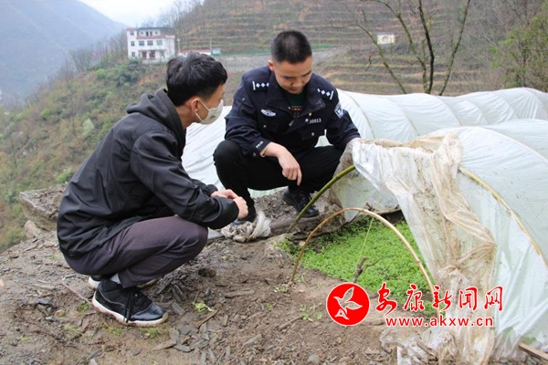 群眾徐良發口中的“劉警官”叫劉祥松,三十出頭,鎮坪人,是市公安局派駐旬陽縣金寨鎮珍珠村的駐村工作隊員。聽到老徐的呼喚,他挽起褲腿,三步并作兩步,跑到地里,二人一起忙碌起來。