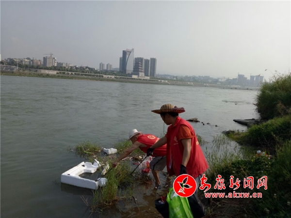 安康新聞網訊(實習記者 唐正飛 通訊員 王宗梅 林超 )8月17日天蒙蒙亮,漢江河岸旁除了零零星星的一些晨練市民,在水岸草叢處,身著紅色志愿服裝的海燕和她的隊友們在清澈的河水映襯下,格外顯眼。每天從早上6點起,大北社區居民海燕和她的隊員們就開始了一天的河岸垃圾打撈護河工作,從水西門到暴家巷河段,海燕和她的隊友們一趟走下來要花近1個小時,盡管是“三伏”天,海燕和她的隊員每天都要走一趟。