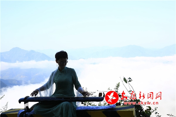 見美景來襲,早來的游客紛紛拿出手機拍下這美妙的瞬間。公路邊,幾位游客早已擺放好茶具,準備在茶香縹緲之中感觸心境,濾去凡塵。琴師也把握時機,端坐于地。弦在指尖跳躍,琴聲穿透云海,是那么的清澈、那么的透明。