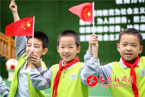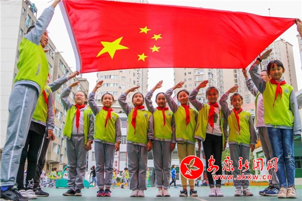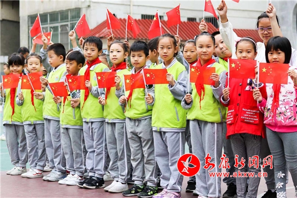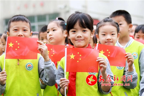 安康新聞網訊(通訊員 張慶 胡開勇 劉雯)9月30日下午,為慶祝建國69周年,紫陽小學全體師生開展了“我與國旗合個影,我對祖國說句話”主題活動。