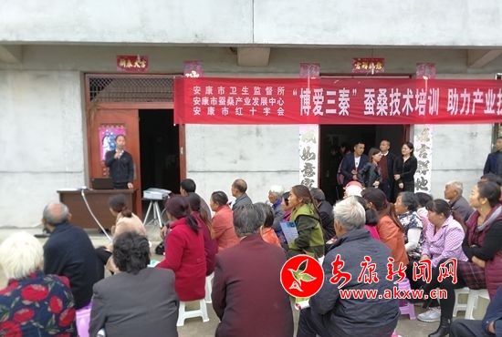 安康新聞網訊 10月19日,安康市紅十字會與安康市衛生監督所深入幫扶村漢濱區張灘鎮響水村開展“博愛三秦”蠶桑技術培訓,根據響水村產業發展實際需求,邀請市蠶桑站站長賀長厚進行蠶桑產業發展知識講座。響水村干部群眾及市衛生監督所、市紅十字會部分結對幫扶干部共80余人參加活動。