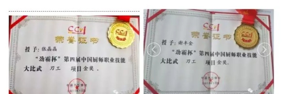 兩人均獲得廚師技能技藝大比武刀工項目金獎