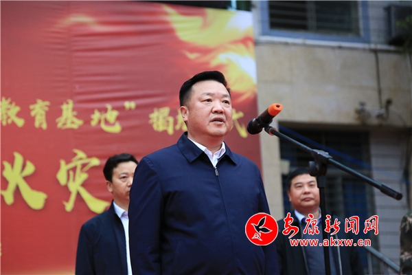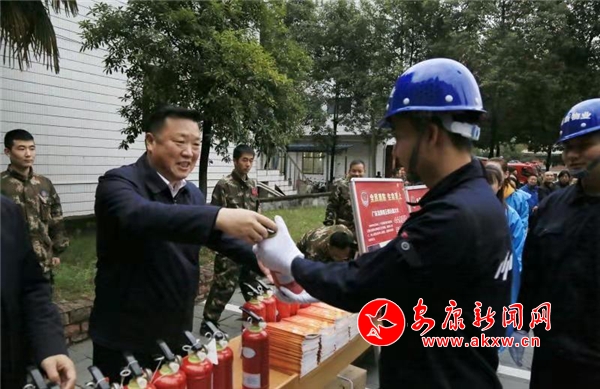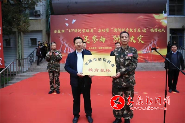 活動中,楊尚偉副市長向參加本次活動的群眾代表和學生代表發放了消防安全宣傳資料及消防器材。期間,市消防支隊長向安康職業技術學院進行了消防科普教育基地授牌,標志著安康市首家市級消防科普教育基地正式成立。