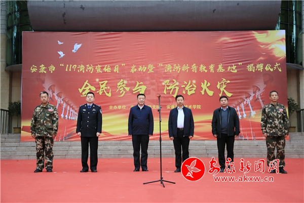 安康新聞網訊(通訊員 劉紀麟 莊濤)11月6日下午,安康市2018年“全民參與、防治火災”消防宣傳月活動暨“消防宣傳科普教育基地”揭牌儀式在安康職業技術學院舉行,副市長、市消安委主任楊尚偉出席并宣布活動啟動。市消安委辦公室主任、市公安局副局長周斌等出席啟動儀式。
