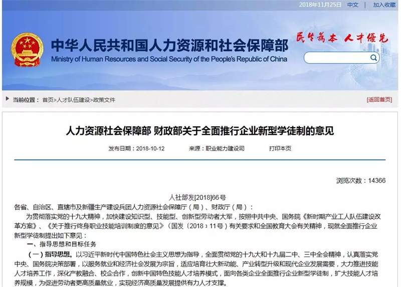 日前,人社部、財政部共同印發《關于全面推行企業新型學徒制的意見》。跟小編一起來看看,國家對企業新型學徒制的支持!