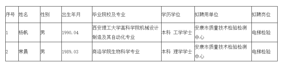 附件:安康市質量技術監督局2018年公開招聘緊缺特殊人才擬聘用人員匯總表