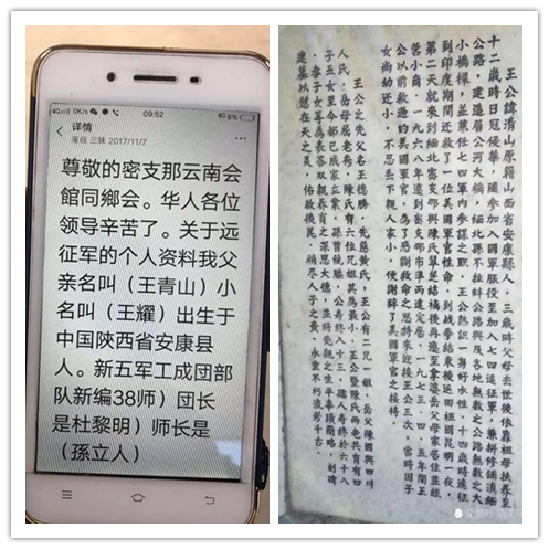 她們記得很清楚,父親后半生一直念叨的事情就是想回家,回到祖籍陜西安康落葉歸根,但是這個愿望一直沒有實現。父親名叫王清山,是陜西安康人,13歲的時候毅然決然地加入遠征軍,隨軍入緬甸抗戰,而這一走沒想到就是一輩子再也沒有回來過。
