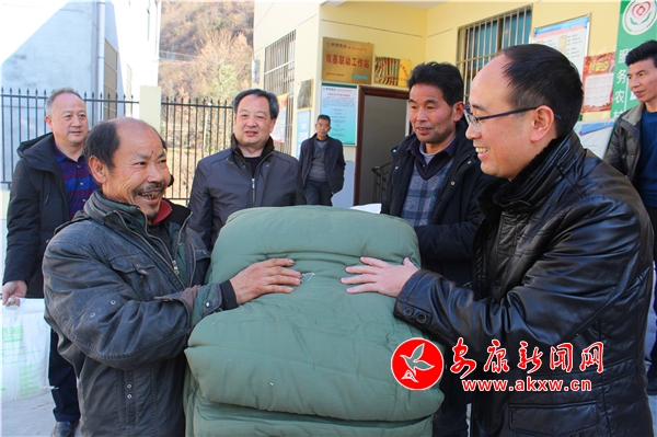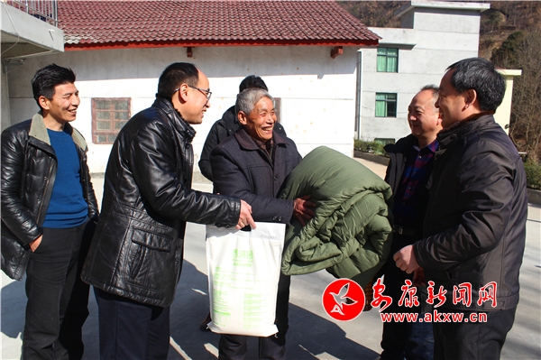 安康新聞網訊(通訊員 寇偉 張忠誠)1月22日,市稅務局相關領導帶領駐村工作隊員驅車來到漢濱區早陽鎮高躍村開展“送溫暖”走訪慰問活動,共看望慰問23名五保老人和1名貧困學生,提前為他們送上新春的禮物和祝福。